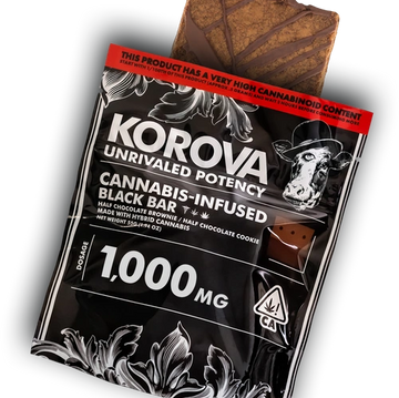 KOROVA UNRIVALED PONTENCY CANNABIS INFUSED BLACK BAR. MADE WITH HYRID CANNABIS 1000MG