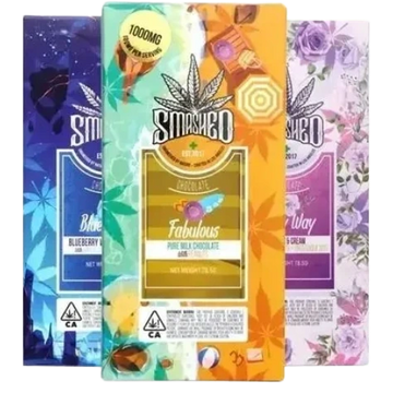 Smashed 1000mg bar. Infused with full spectrum cannabis oil. Smashed Chocolates are handmade in Los Angeles and provide a great alternative for those who want to medicate without smoking.