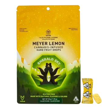 EMERALD SKY HARD CANDY FRUIT DROP 100MG. 20 INDIVIDUALLY WRAPPED PIECES.