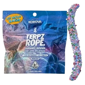 KOROVA TERPZ ROPE. EDIBLE GUMMY ROPE ENCRUSTED WITH TART FRUITY ROCK SUGAR 100MG