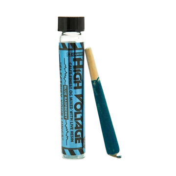 This pre-roll will electrify your lungs. Filled with 1.3 grams of the finest OG and infused with premium live resin, our High Voltage Rolls are the pre-roll treat that burns slow and leaves your eyes low! It strain comes with different colored Kief. Try one of our premium High Voltage Rolls today. Lab tested 40% THC+
