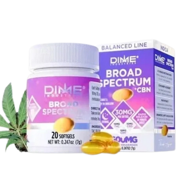 DIME INDUSTRIES BROAD SPECTRUM SOFGELS. DISCREET AND EASY TO SWALLOW. 2O SOFTGELS, 30MG PER SOFGELS.